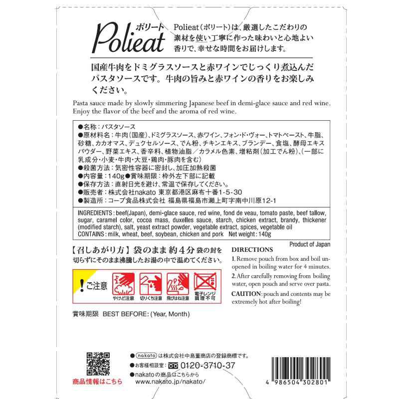 麻布十番シリーズ Polieat (ポリート) 国産牛肉の旨みと赤ワインの香りを楽しむドミグラス仕立てのラグーソース[1人前/140g]