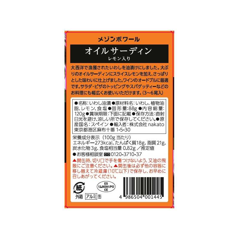- いわし、植物油脂、レモン、食塩