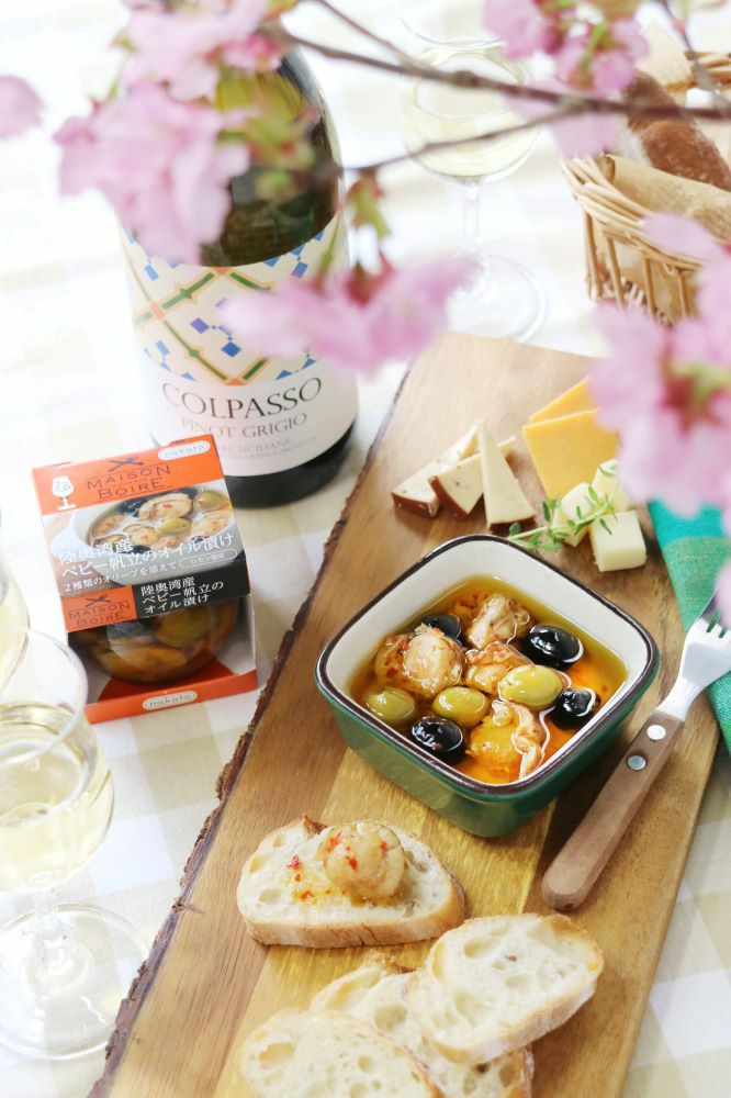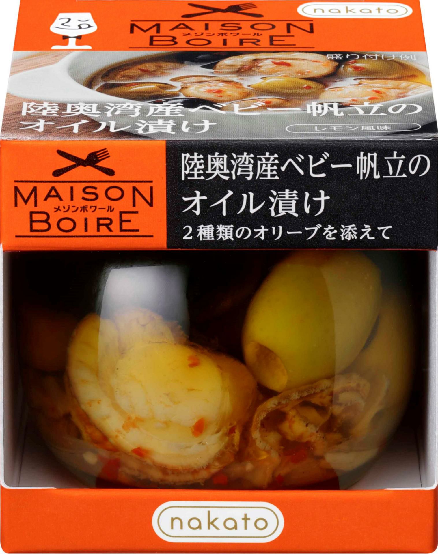 メゾンボワール 陸奥湾産ベビー帆立のオイル漬け 2種類のオリーブを添えて