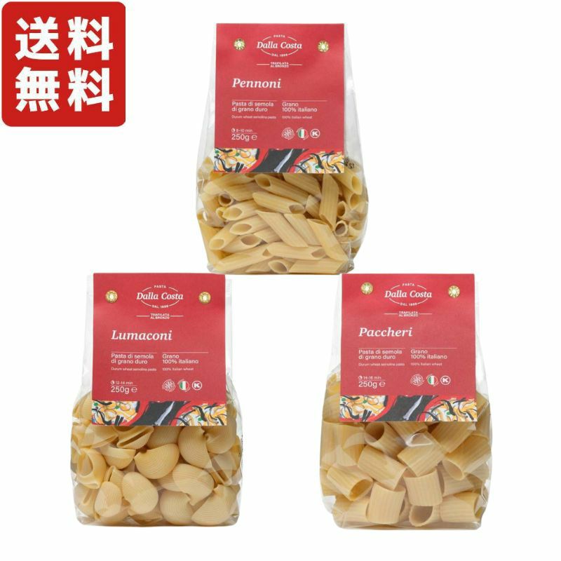 ■ダラコスタ 大型ショートパスタ3種セット(ペンノーニ・ルマコーニ・パッケリ)