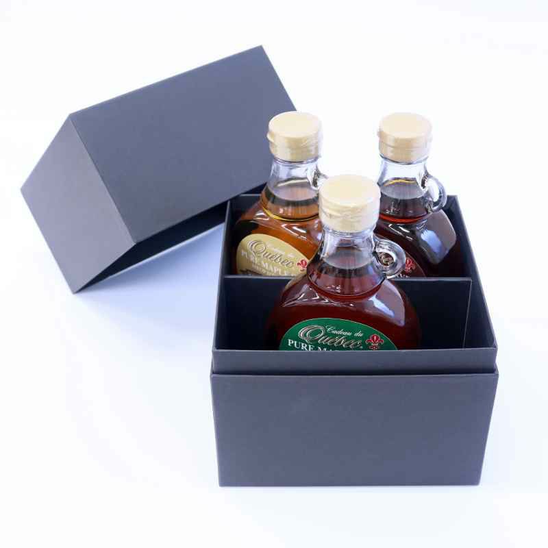 - カナダ ケベック州で採取された100%純粋なメープルシロップです。春先のわずかな期間にメープルの樹木から採取した樹液を煮詰めただけの、着色料や添加物を一切含まない自然の甘味料です。※「カド デュ ケベック」は「ケベックからの贈り物」の意。