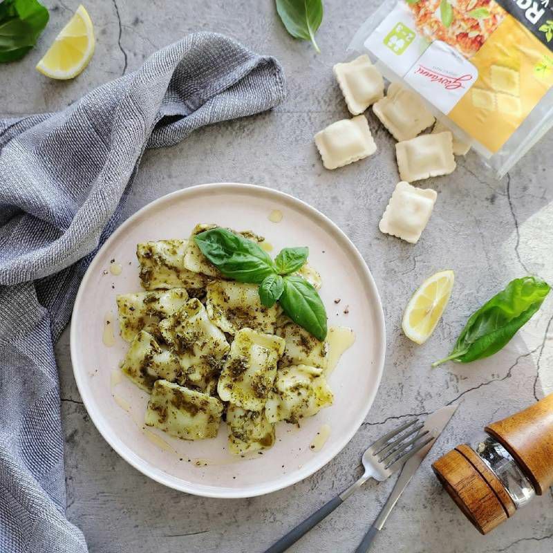 植物性チーズを詰めたラビオリは、軽いナッツ、チーズのような風味とスパイスが香ります。季節の野菜と、オリーブオイルやバジルソースなど、シンプルな味付けがおすすめです。