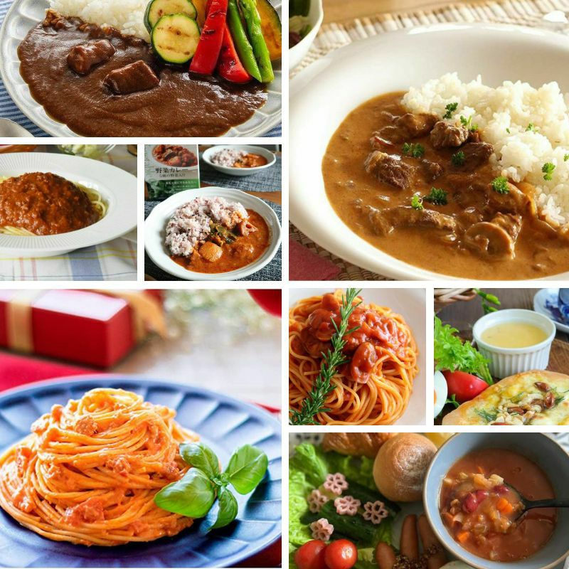 カレー、ハヤシ、ストロガノフ、パスタソース、スープなど、バラエティ豊かな品揃え。