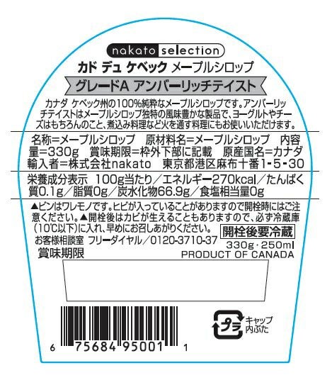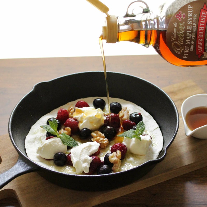 アンバーリッチテイストはメープルシロップ独特の風味が豊かな製品で、ヨーグルトやチーズはもちろんのこと、煮込み料理など火を通す料理にもお使いいただけます。