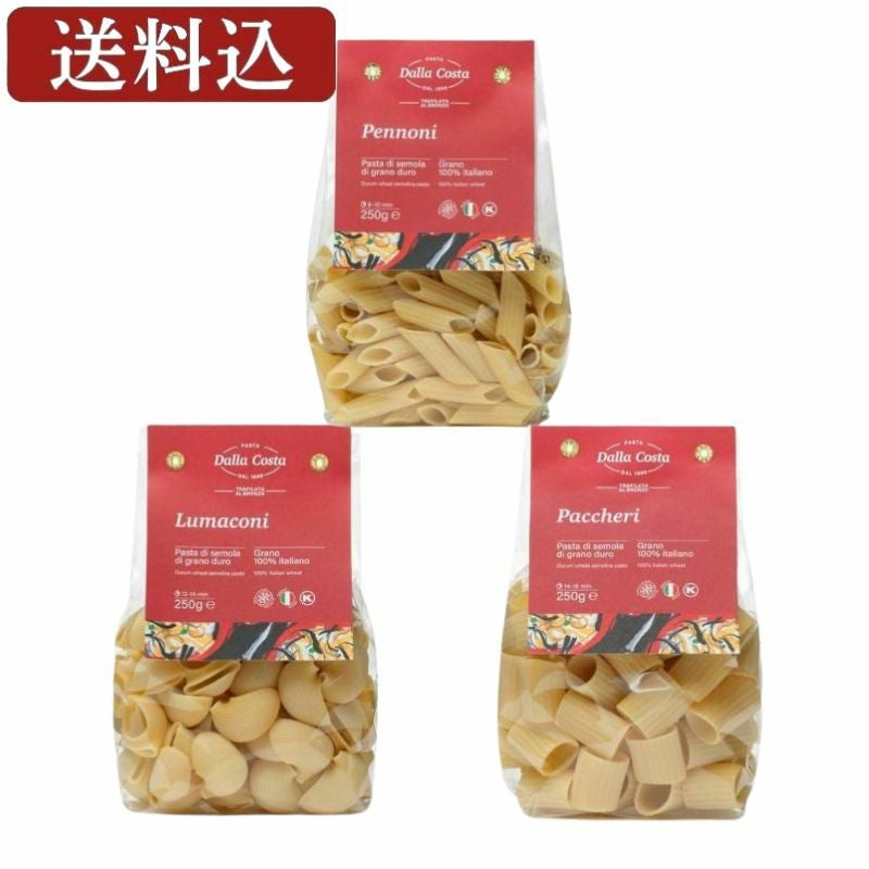 送料無料の大型ショートパスタ3種類セット。