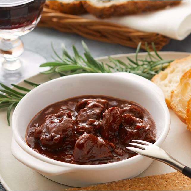 - 牛肉(オーストラリア)、赤ワイン、マッシュルーム、トマトケチャップ、たまねぎ、にんじん、植物油脂、トマトペースト、フォン・ド・ヴォー、チキンエキス、セロリ、小麦粉、砂糖、でん粉、リキュール、デュクセルソース、食塩、チキンエキスパウダー、酵母エキスパウダー/カラメル色素、調味料(アミノ酸等)